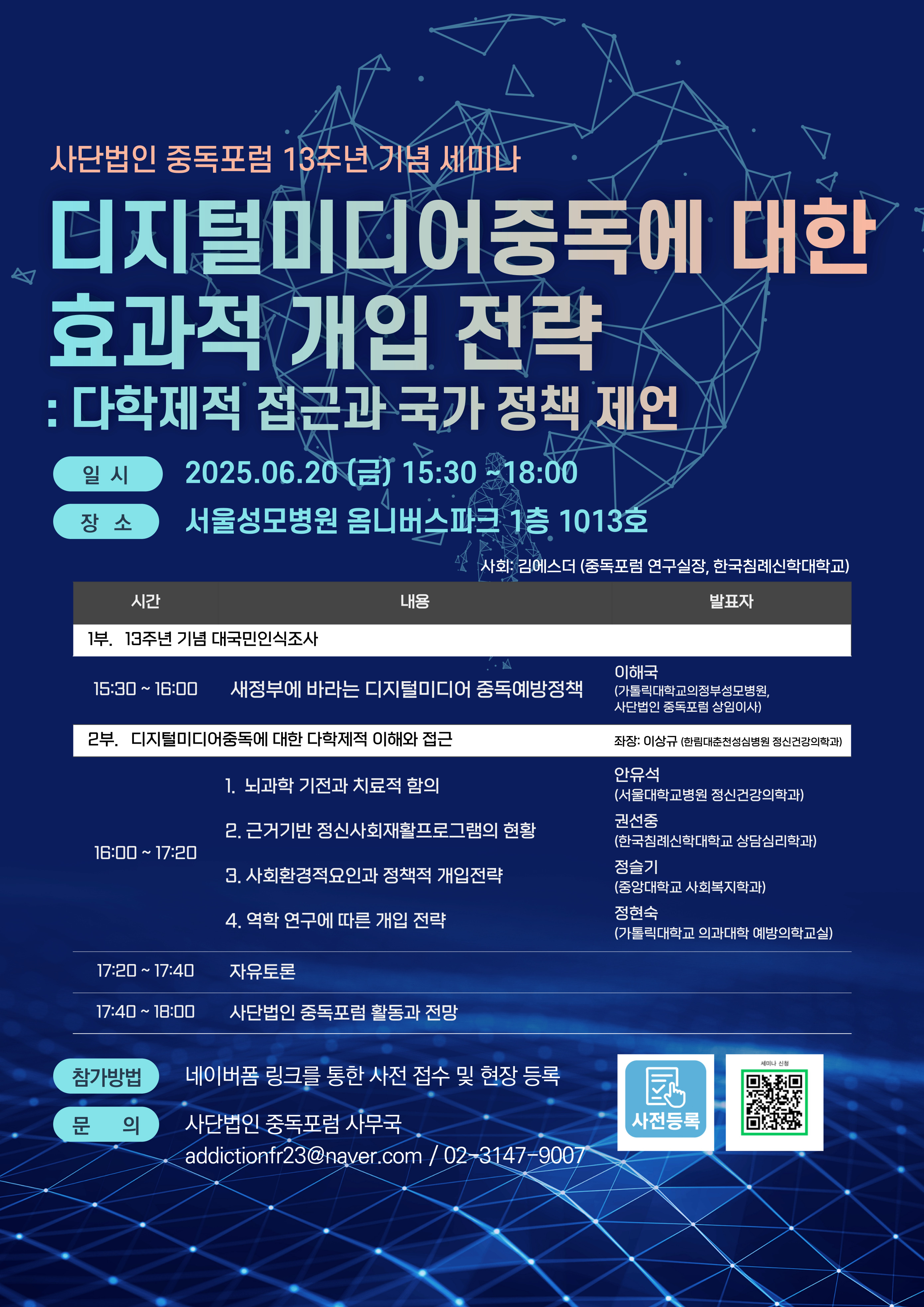 [사단법인 중독포럼] 창립 13주년 기념세미나 : 디지털미디어중독 효과적 개입 전략