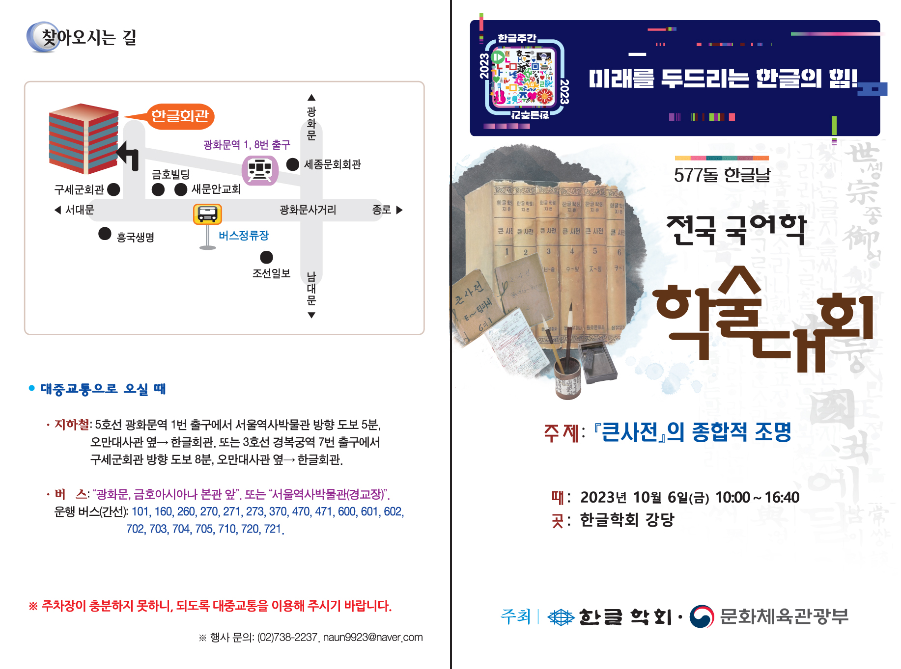 577돌 한글날 기념 전국 국어학 학술대회 알림